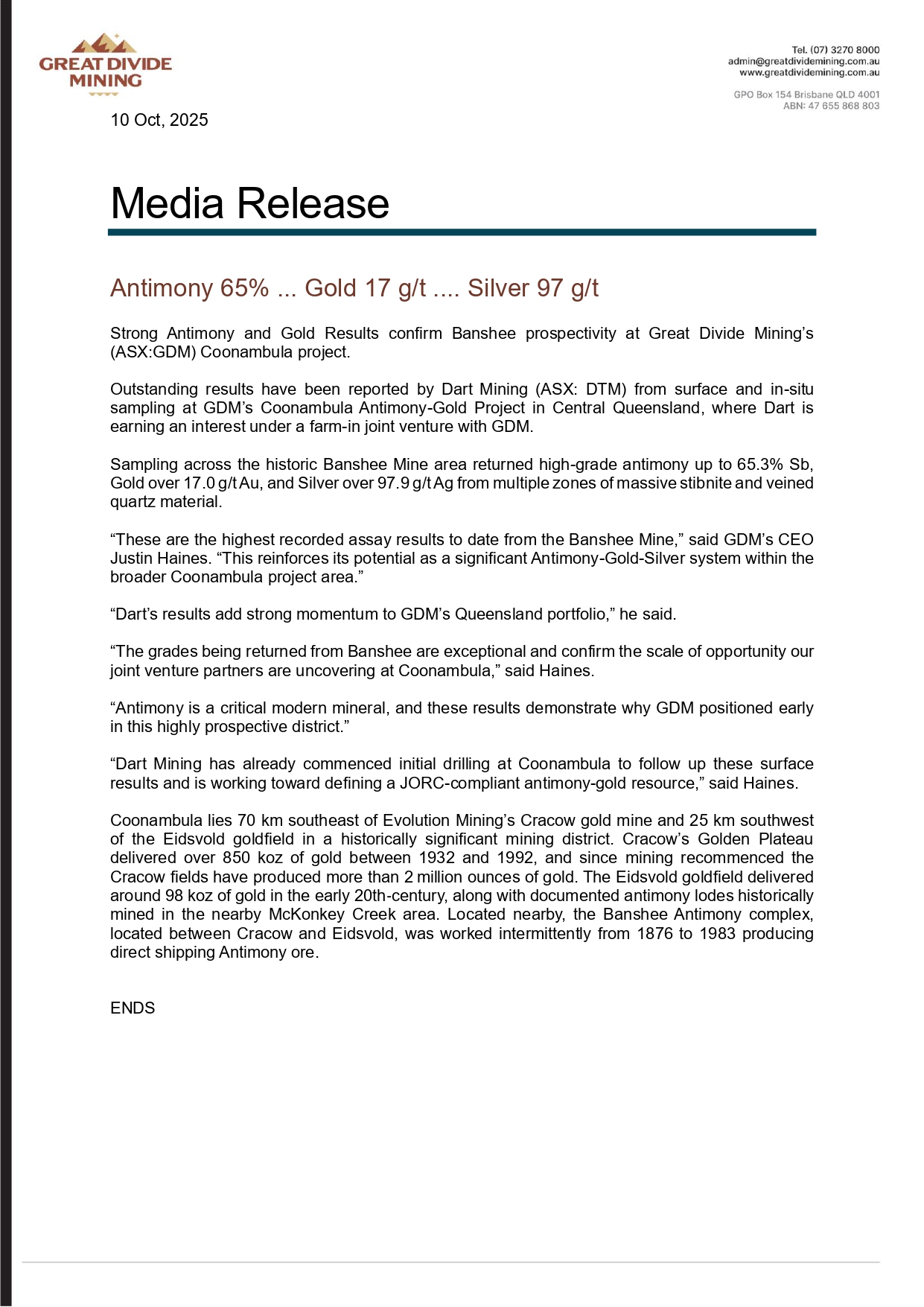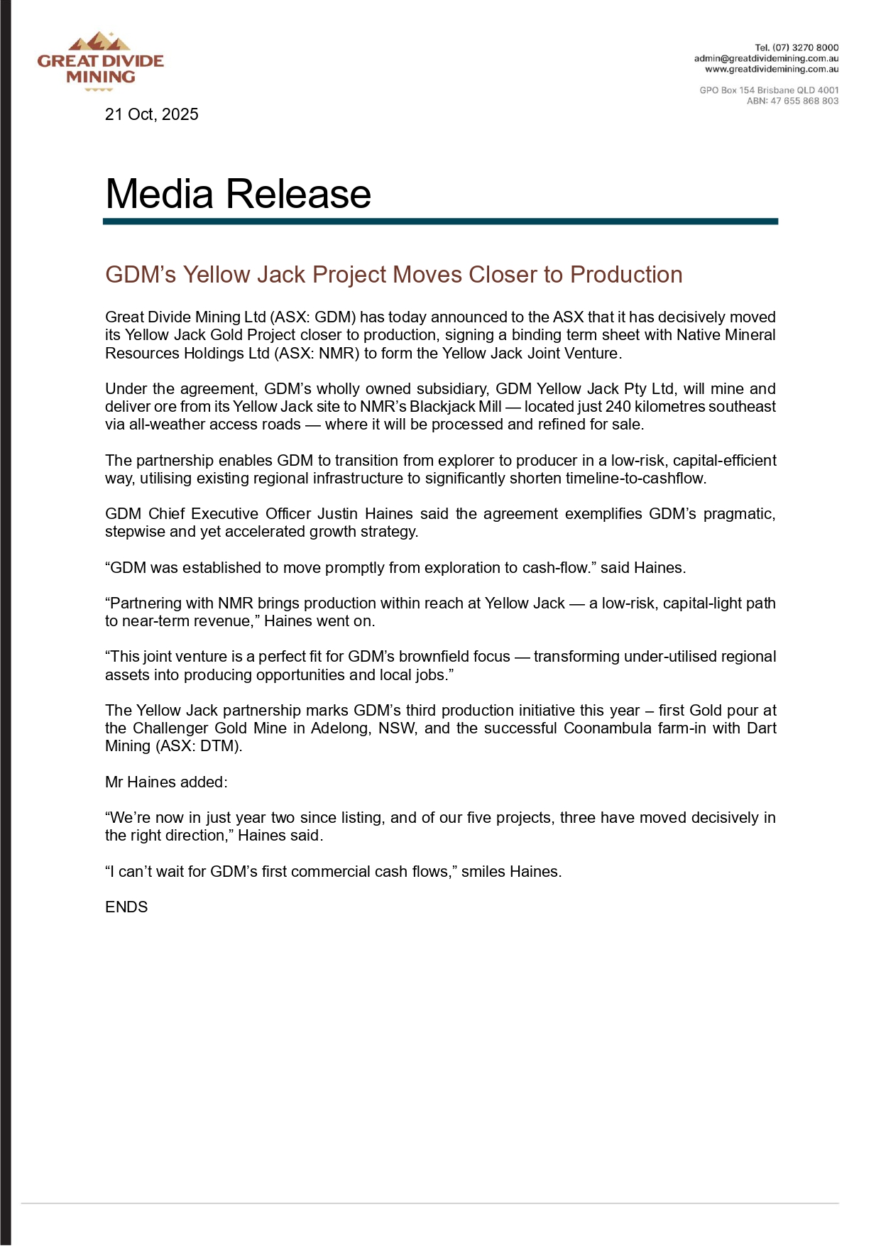 e justin.haines@greatdividemining.com.au